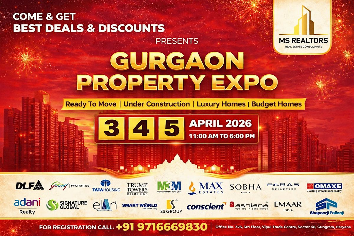 No other Gurgaon property event this April runs for 3 days. MS Realtors India's expo at Vipul Trade Centre is the most comprehensive property event in Gurugram this month.