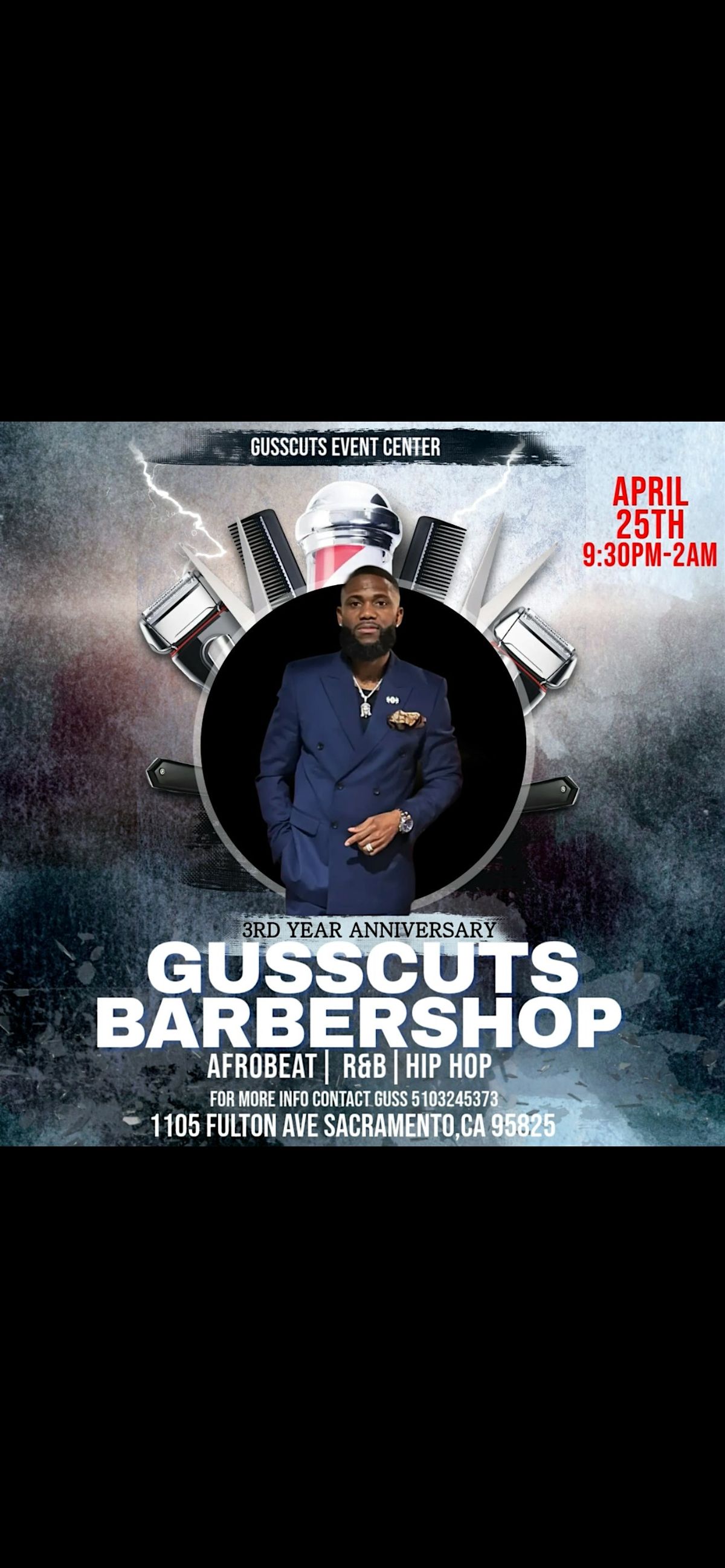 Come celebrate three awesome years of Gusscuts Barbershop Establishment with good vibes, Food, and much more. Afrobeat, R&B, and hip-hop!!