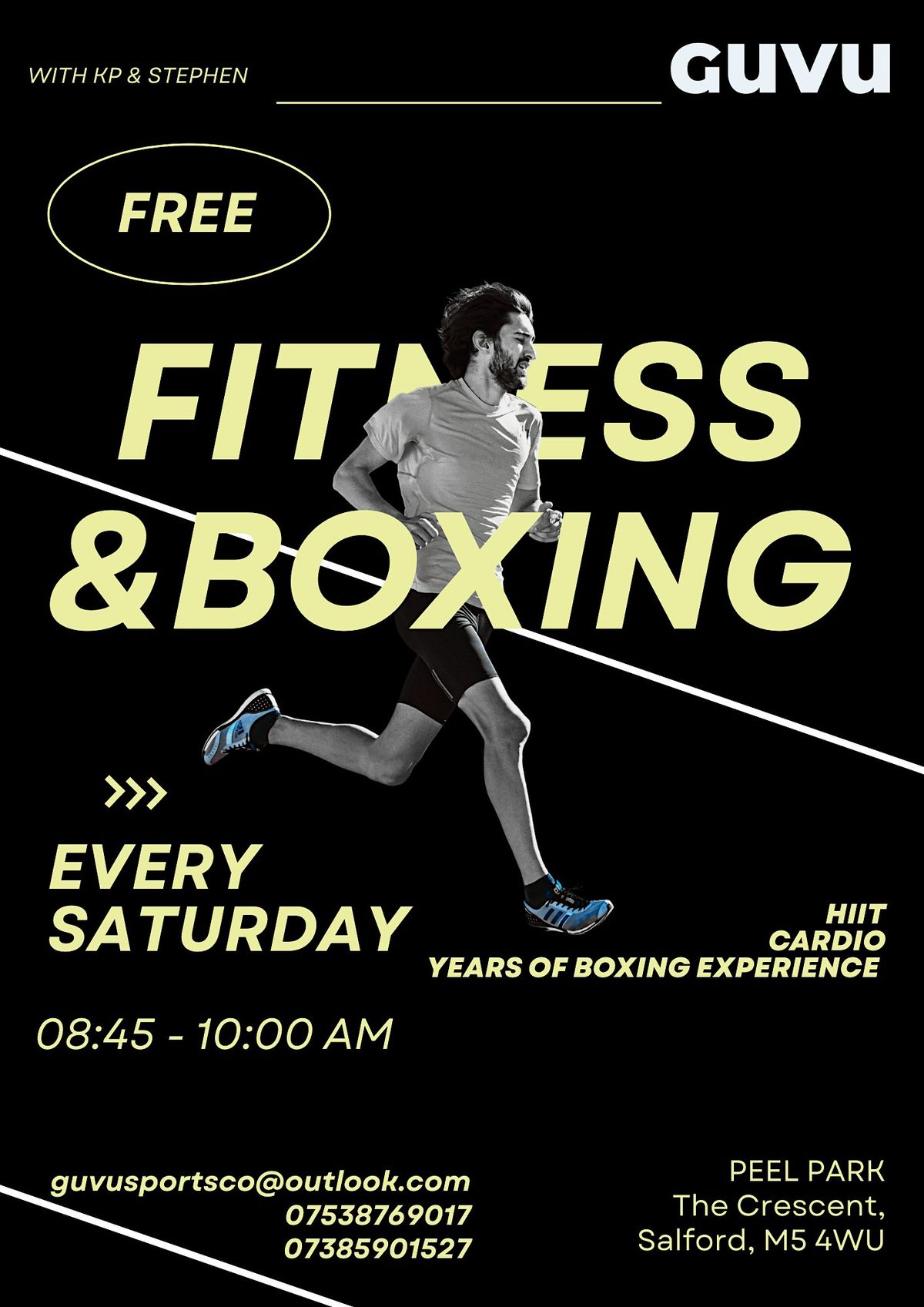 Train outdoors and feel the energy of the park with KP and Stephen, bringing years of real fitness and boxing experience to the community.