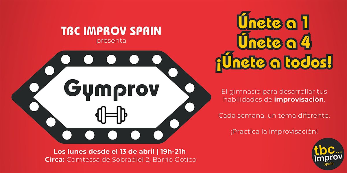 Gymprov es un entrenamiento semanal para tus habilidades de improvisación. Únete a Ignacio Grinstein de TBC Improv en una sesión diseñada para poner a prueba tus "músculos" creativos. Cada semana exploraremos un tema específico que podrás añadir a tu caja de herramientas de improvisación.