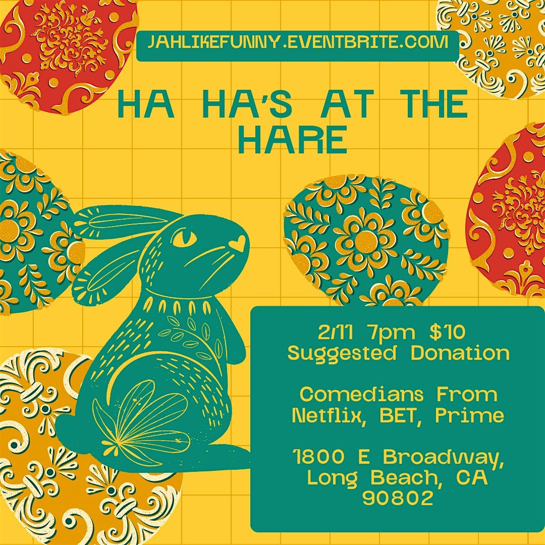 Welcome to Ha Ha's at The Hare! Get ready for a night filled with laughter at The Hare on February 11, 2026 at 7:00 PM (Pacific Time). Join us for a hilarious evening of comedy with talented comedians guaranteed to make you laugh until your sides hurt. Don't miss out on this fantastic event!