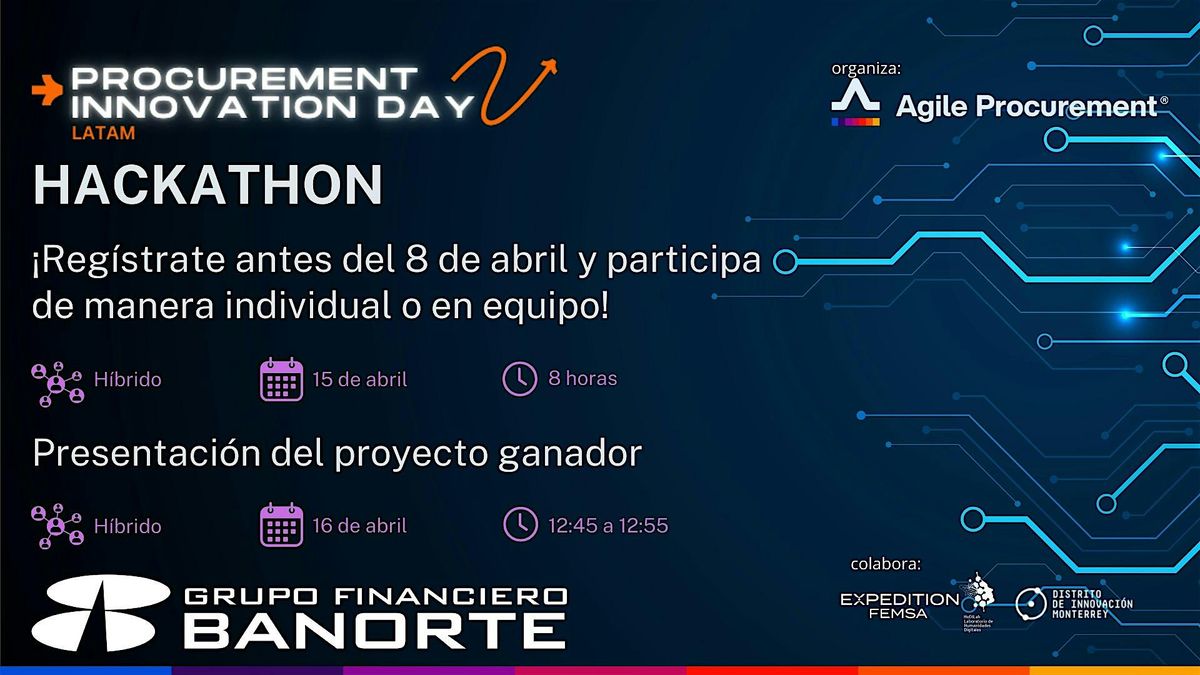 Hackathon organizado por Agile Procurement y HUDILAB, Laboratorio de Humanidades Digitales del Tecnológico de Monterrey y referente del Distrito de Innovación, el cual se integra a Procurement Innovation Day como aliado estratégico para amplificar la experiencia del evento, combinando innovación y tecnología con estrategias narrativas basadas en análisis de audiencias, transformando cada interacción en contenido de alto impacto.