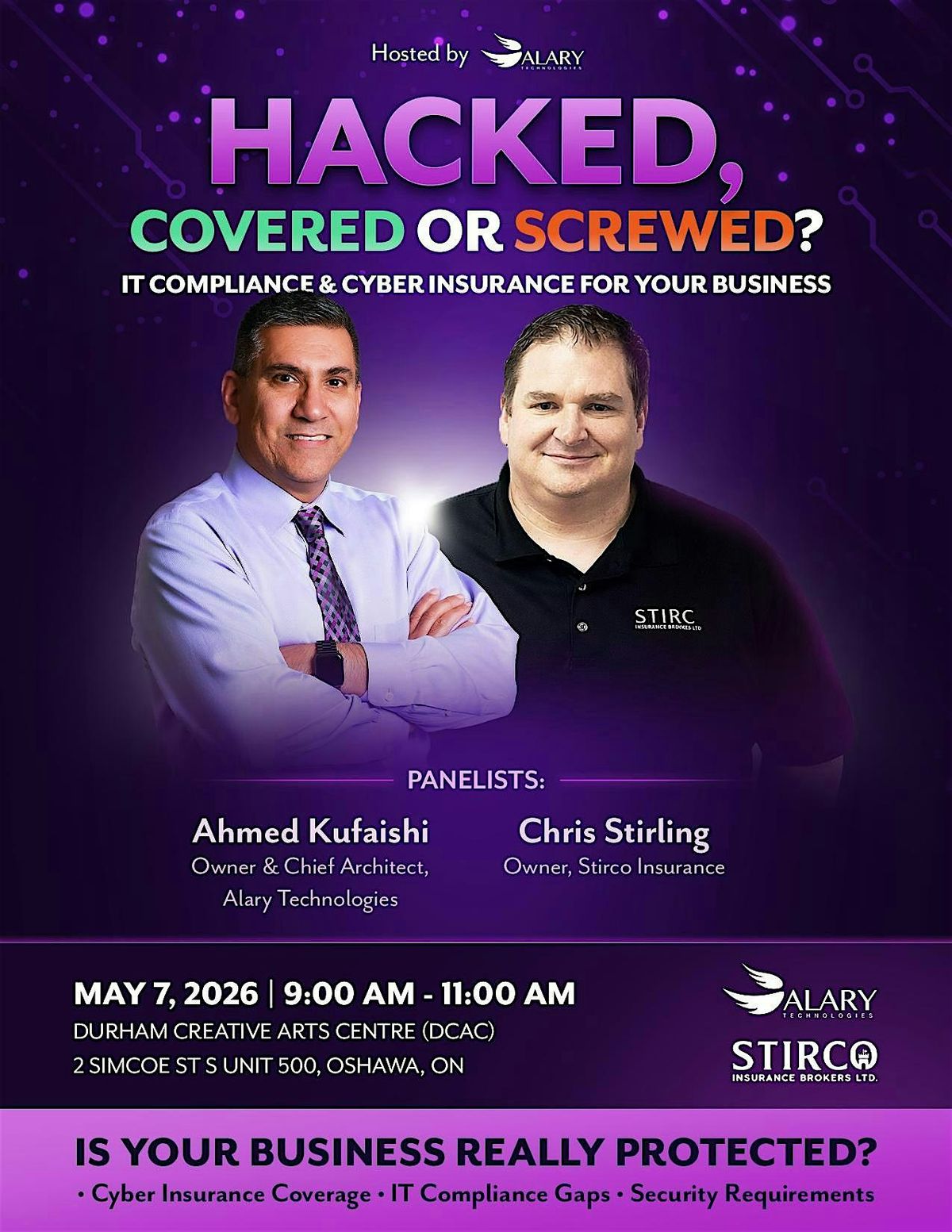 Join Alary Technologies and Stirco Insurance for a panel conversation exploring cyber insurance coverage, insurer compliance requirements, and how your IT environment directly impacts your ability to qualify for and successfully claim cyber insurance. Learn where businesses commonly fall short, what insurers look for, and how to ensure your organization isn’t caught unprotected when a cyber incident occurs.