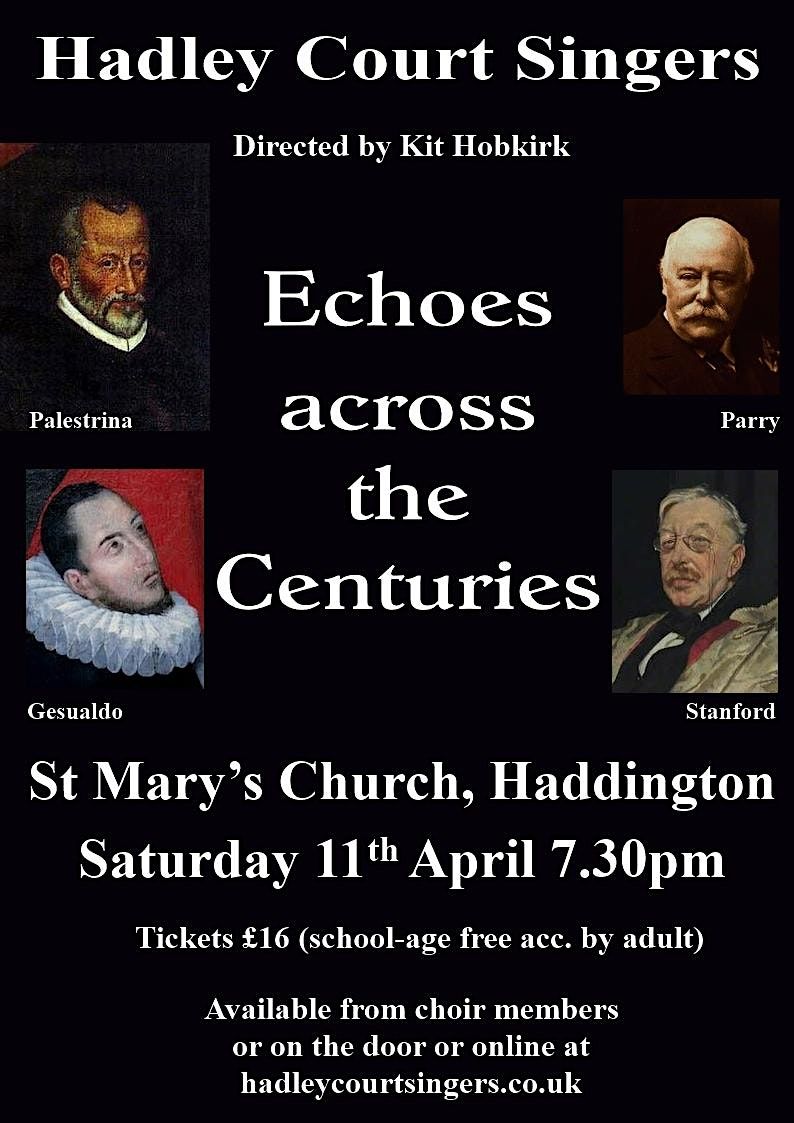 Hadley Court Singers directed by Kit Hobkirk present a concert featuring works by Palestrina, Gesualdo, Stanford and Parry.About this Event