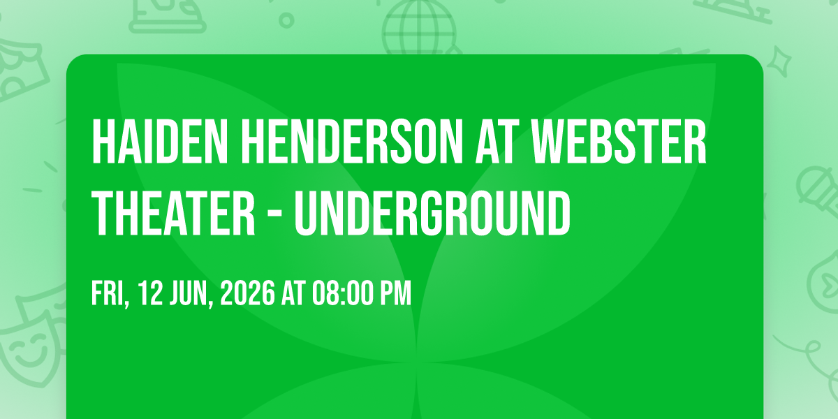 🌟 Step into a world of wonder at Haiden Henderson at Webster Theater - Underground, where extraordinary moments await! 🏛️ Located at Webster Theater - Underground in dynamic Hartford, CT, this event will become the talk of the town. 📅 Join us on June 12th, 2026 at 08:00 PM for a celebration that defies the ordinary. ✨ This curated experience brings together the best of entertainment, culture, and community spirit. Every detail has been thoughtfully planned to ensure an unforgettable experience for all our guests. 🎯 Take advantage of this opportunity to be part of something special. 🎊 Early registration is recommended as space is limited!