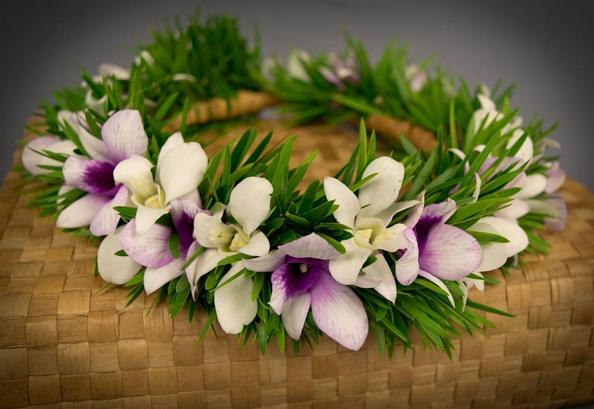 This is an instructional class with all materials provided. Leis will be constructed of ferns, baby breath, & orchids.