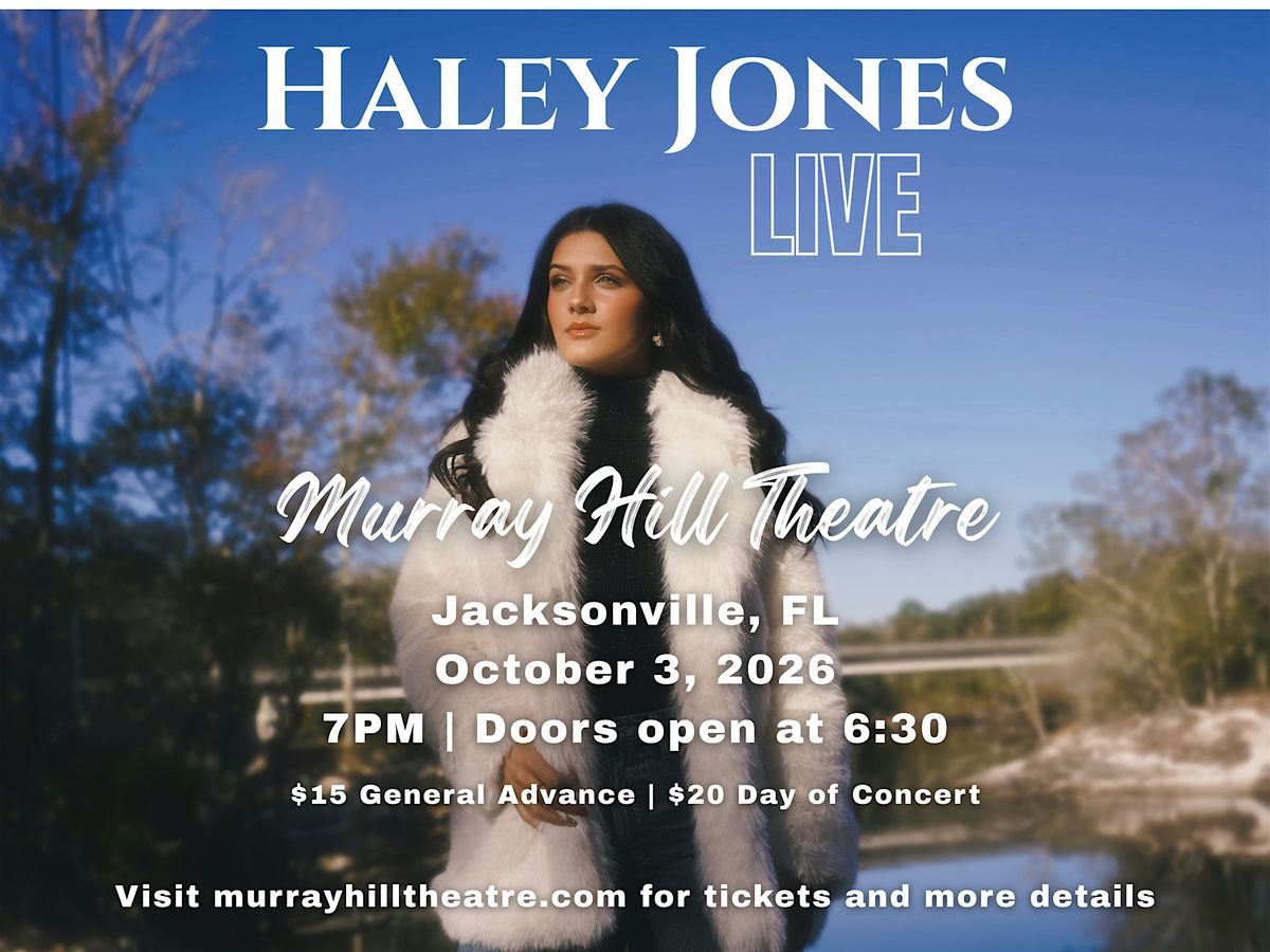 Join us for an unforgettable evening as Christian Recording Artist Haley Jones takes the stage live at Murray Hill Theatre in Jacksonville, Florida on October 3, 2026. Known for her powerful vocals, heartfelt lyrics, and captivating stage presence, Haley delivers a dynamic live experience that connects deeply with audiences of all ages which blends contemporary christian music along with worship.