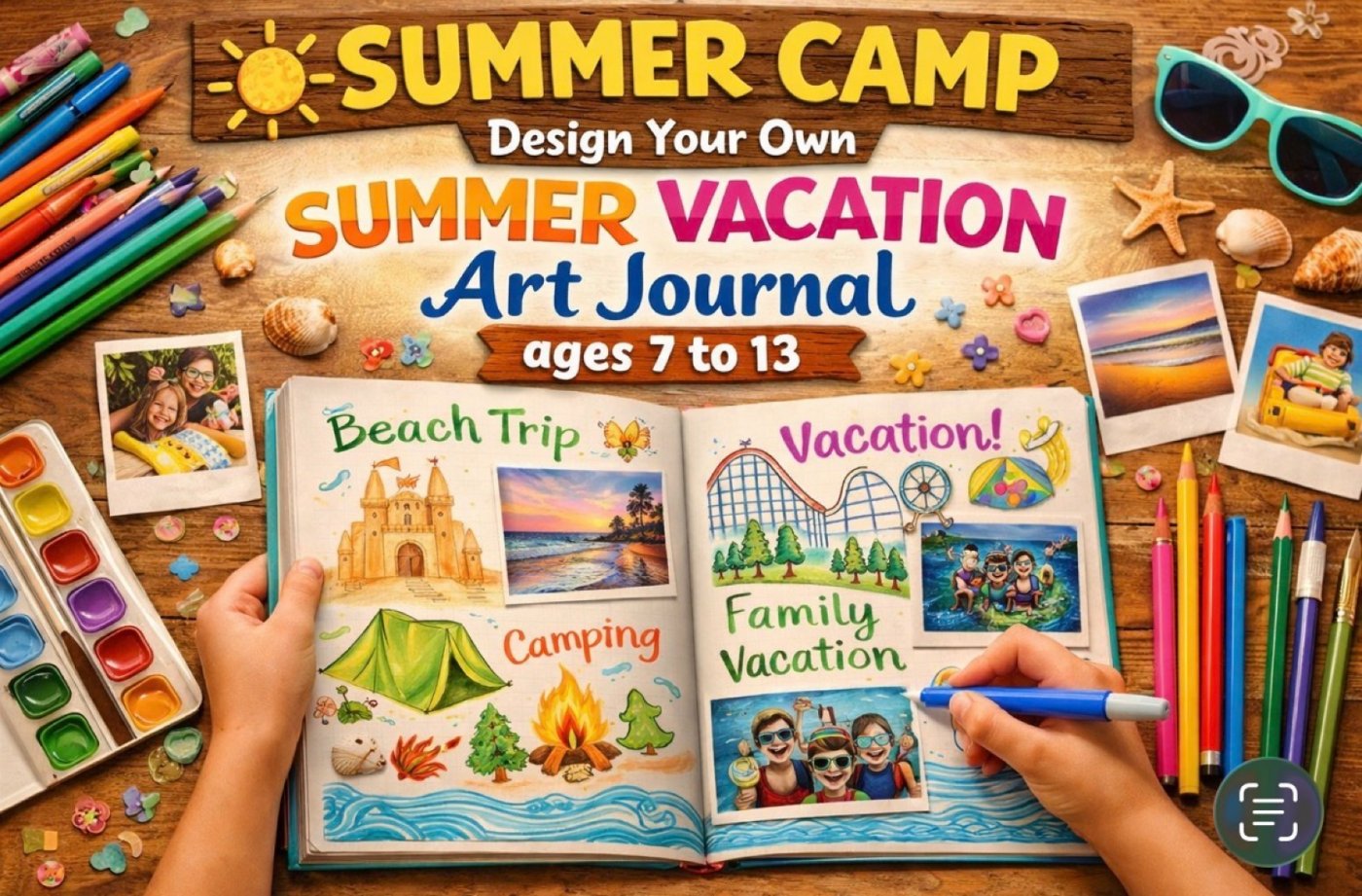 Activity Description: In this unique summer art program, students will create their own 12x12 art journal which depicts the best parts of their summer. They will learn the basics of art journaling from an experienced instructor in a fun and relaxing atmosphere and will use various scrapbooking and other art supplies to bring their journal to to life and create lasting memories in a creative way. They will also be provided with writing prompts and will include their responses in their journal. Students must bring their own printed photos with them.