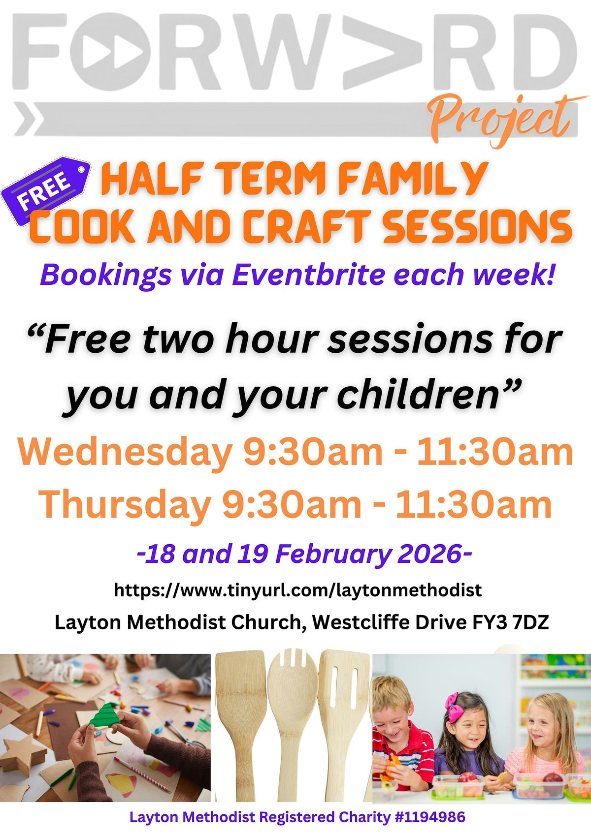 Free Family Cookery & Craft – hands-on cookery and craft for ages 3+.Thursday 9.30–11.30am. Children with adults, no crèche. All welcome!
