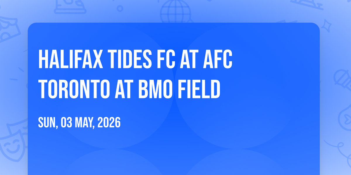 🎉 Welcome to Halifax Tides FC at AFC Toronto at BMO Field, where the impossible becomes possible and dreams take flight! 🏛️ Join us at BMO Field in the heart of Toronto, ON for an event that will redefine your expectations. 📅 On May 3rd, 2026 at 12:00 PM, witness the transformation of space and time into something truly magical. ✨ It's a curated experience combining the best of innovation, entertainment, and community spirit, creating moments that will be remembered for years to come. Whether you're a first-time visitor or a seasoned enthusiast, prepare to be amazed. 🎊 Book now to ensure your place in this unforgettable experience!