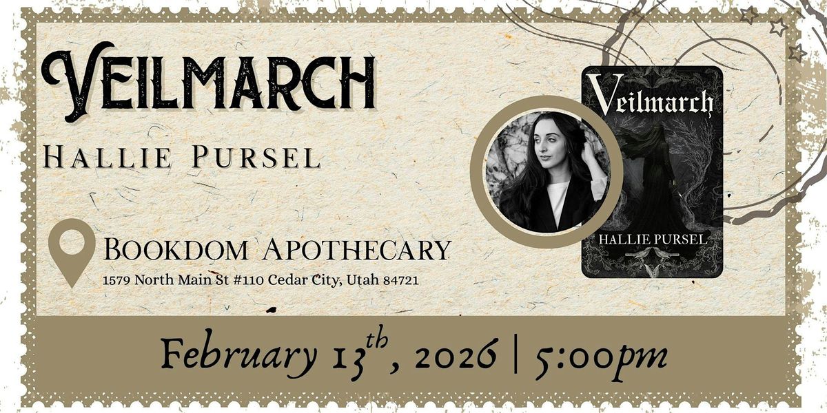 Join Bookdom Apothecary in welcoming Hallie Pursel for an intimate Author Meet & Greet celebrating her debut gothic fantasy novel, Veilmarch. This dark and lyrical story follows Ilys, a Veilwalker raised in obedience and trained as an assassin, as she confronts devotion, sacrifice, and her destiny alongside Death himself.