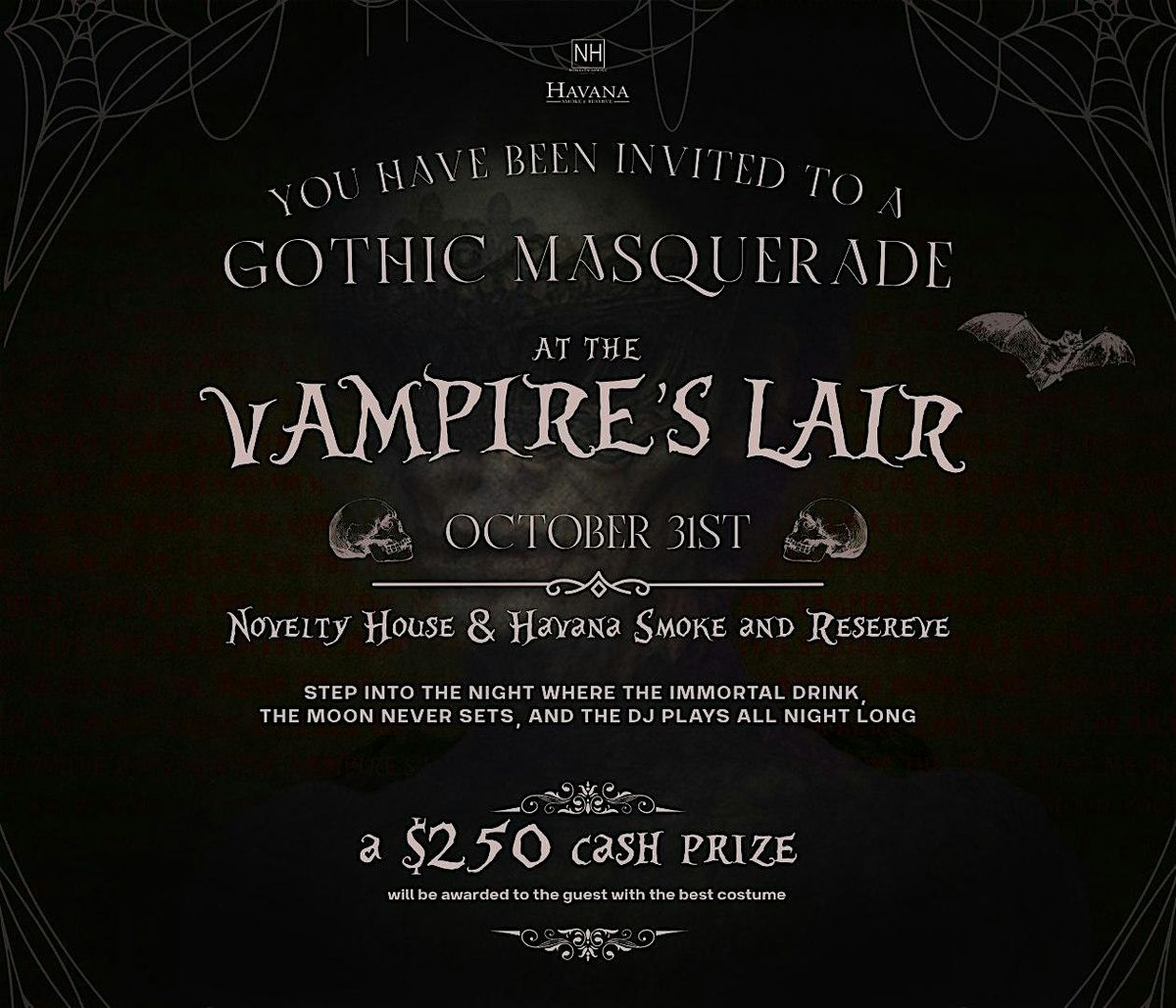 Step into the shadows and surrender to the allure of the night… as Novelty House and Havana Smoke and Reserve transform into the Vampire’s Lair.