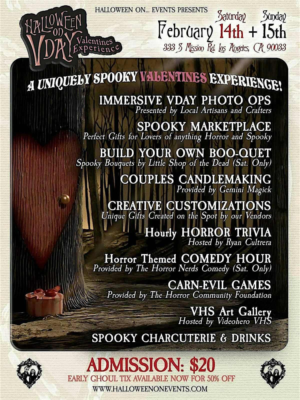 Join us for a complimentary preview of the final moments of our event. FREE Admission after 430 pm on Sunday. 56 amazing vendors to browse through that your date will absolutely appreciate. a series of photo ops that will allow you to capture those memories with your loved ones. HORROR TRIVIA to test your knowledge and win prizes.