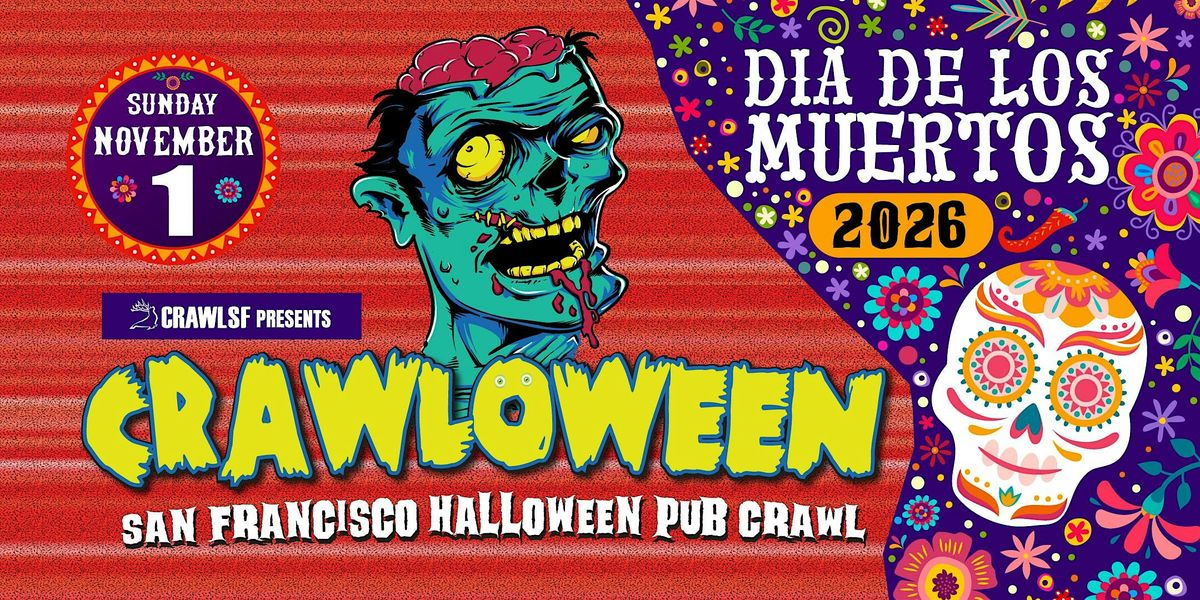 The 2026 Dia de los Muertos Pub Crawl is the official grand finale of Crawloween, a 3-day celebration that brings tens of thousands of costumed partygoers into the streets. Because Halloween falls on a Friday this year, the energy doesn’t stop on October 31. It builds. And on Saturday, November 1, it all comes together for one final blowout across The Marina and Polk Gulch.