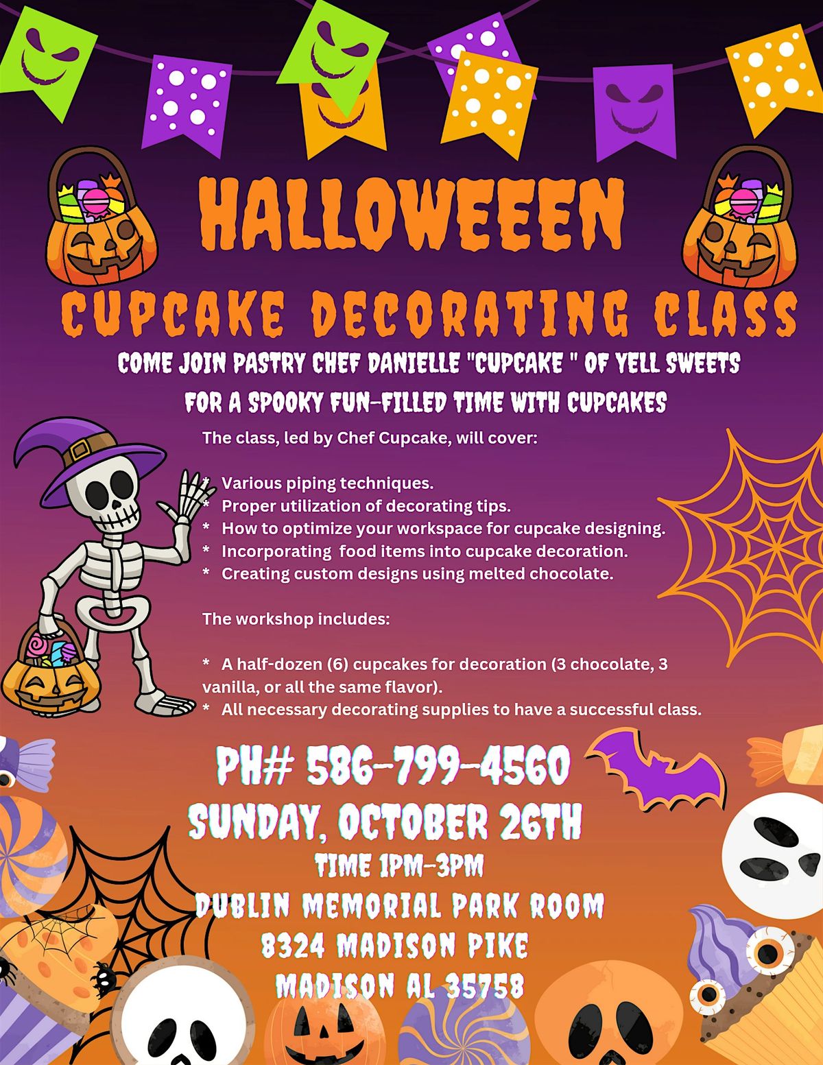 Come join us at Dublin Memorial Park Confernce Room on Sunday, October 26, 2025 from 1pm-3pm for a spooktacular cupcake decorating class!