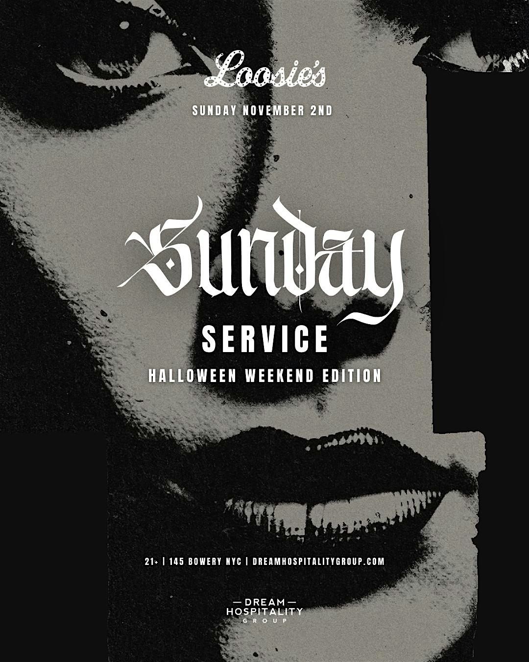 Close out Halloween Weekend in seductive style at Loosie’s for a very special Sunday Service. The energy turns nocturnal as we wind down the wildest weekend of the year with dark disco, divine drinks, and a congregation of NYC’s most stylish nightcrawlers. Whether you’re repenting or relapsing, Sunday’s the last chance to sin before the spell breaks. Velvet vibes, curated chaos, and that signature Loosie’s touch await.