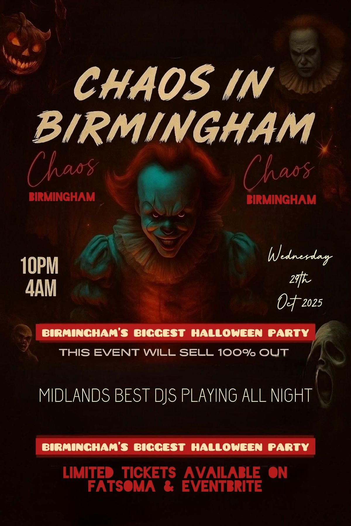 ๐ CHAOS IN BIRMINGHAM โ BIRMINGHAM Biggest Halloween Party! ๐๐ WEDNESDAY 29THย October | 10PM โ 4AM