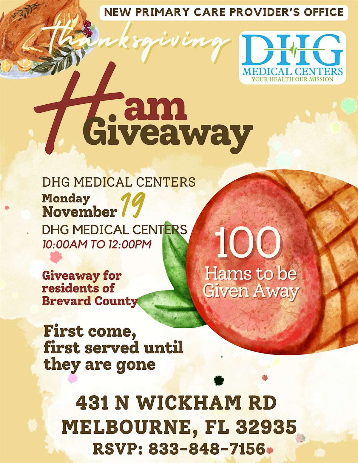 Ham Giveaway in Melbourne 431 N Wickham Rd Melbourne FL 32935. 100 hams to be given away!