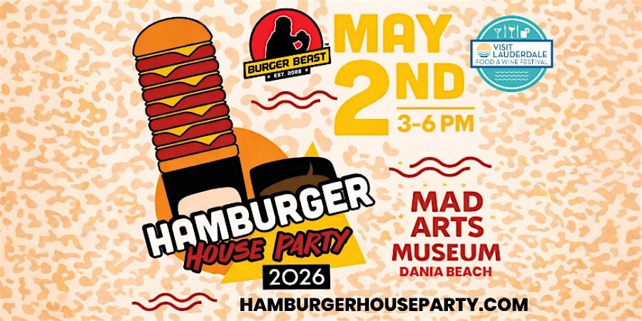 Hamburger House Party returns on Saturday, May 2, 2026 to MAD Yard at MAD Arts Museum in Dania Beach, Florida.