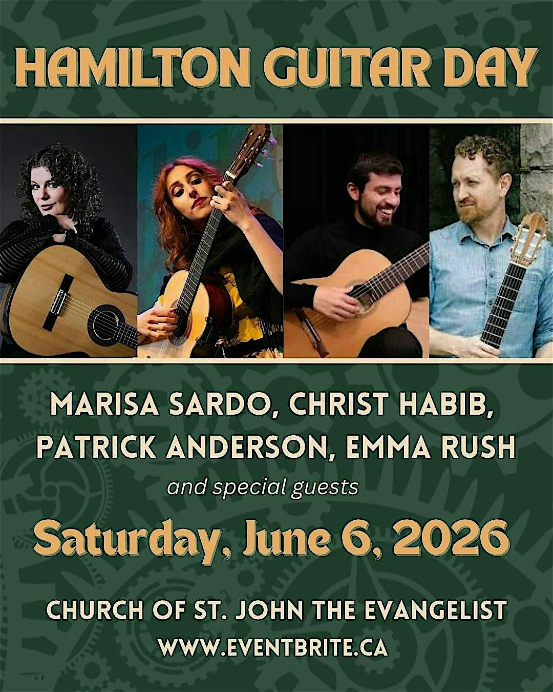 Hamilton Guitar Day participants take part in workshops and masterclasses with Italian guitarist Marisa Sardo, Lebanese-Canadian Christ Habib, and local favourites Emma Rush and Patrick Anderson. All participants should bring their guitars. Note: there are two options for registration. The first is participation with an audit seat in the masterclases. The second is to have a spot as a performer in a masterclass. Whether you play or not, you will learn alot in the classes! Workshops are hands on and everyone will participate. Registration for Hamilton Guitar Day includes a concert ticket for the evening event. This event is suitable for all ages and playing levels.