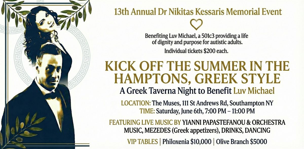 13th Annual Dr. Nikitas Kessaris Memorial Event Benefitting the Luv Michael Charity. Kick off the Summer in the Hamptons, Greek Style!About this Event