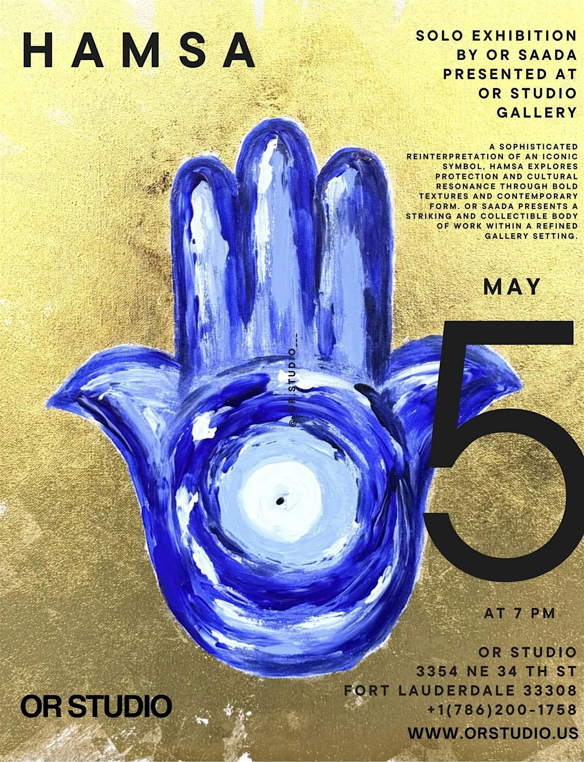 Experience a powerful exhibition inspired by the Hamsa symbol, enjoy a complimentary glass of wine, and witness a live painting session unfolding in real time.