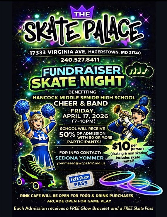 Join us for a fun-filled skating night in support of the Hancock Middle Senior High cheer and band programs!