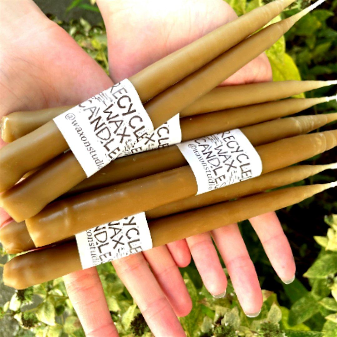 - Two pairs of hand-dipped beeswax taper candles (four total, with the option to make more)