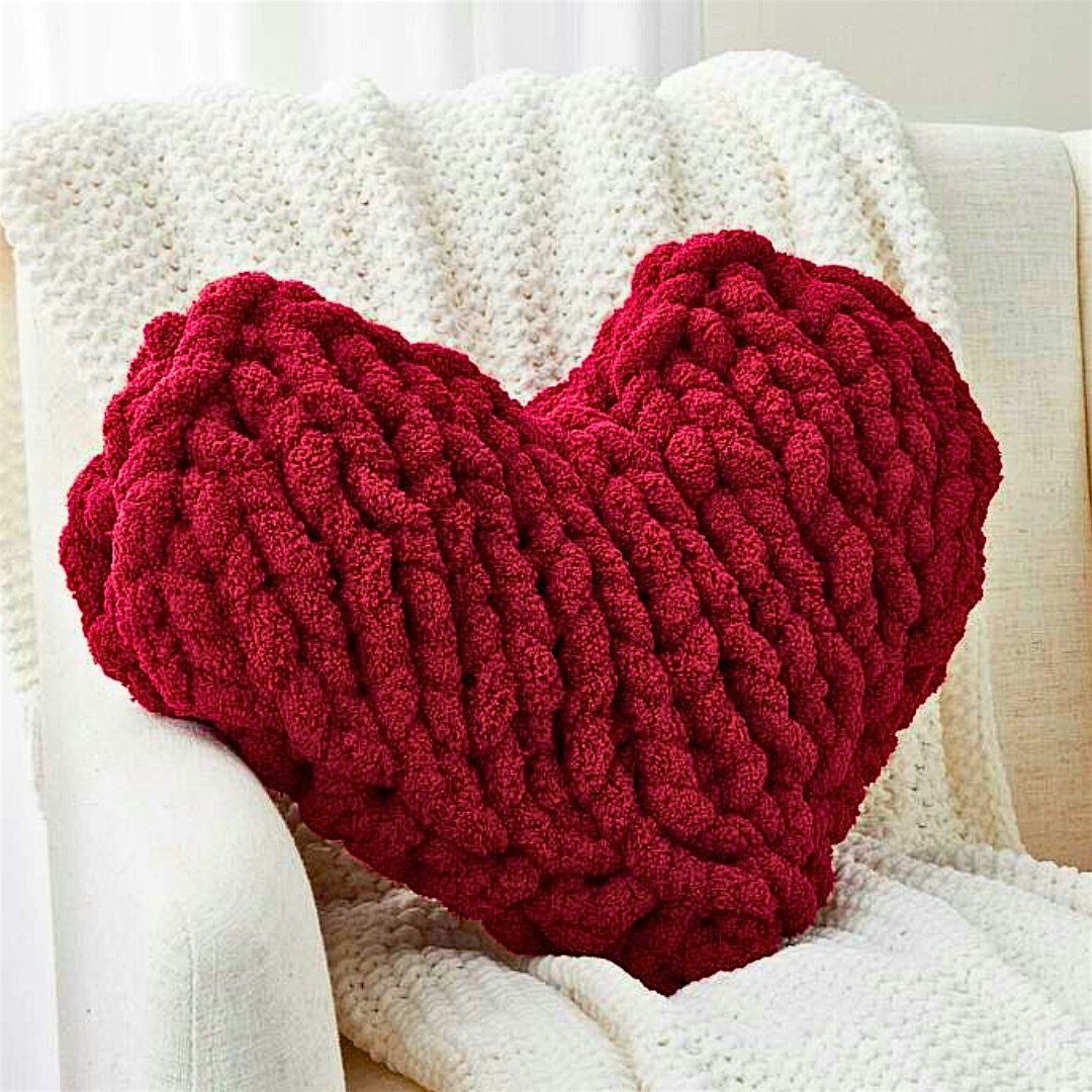 Fall in love with cozy, hands-on creativity. In this beginner-friendly workshop, you’ll create a plush, hand-knit heart pillow using a single skein of ultra-soft chunky yarn. No needles. No knitting experience. Just your hands, beautiful materials, and a relaxed, feel-good process.