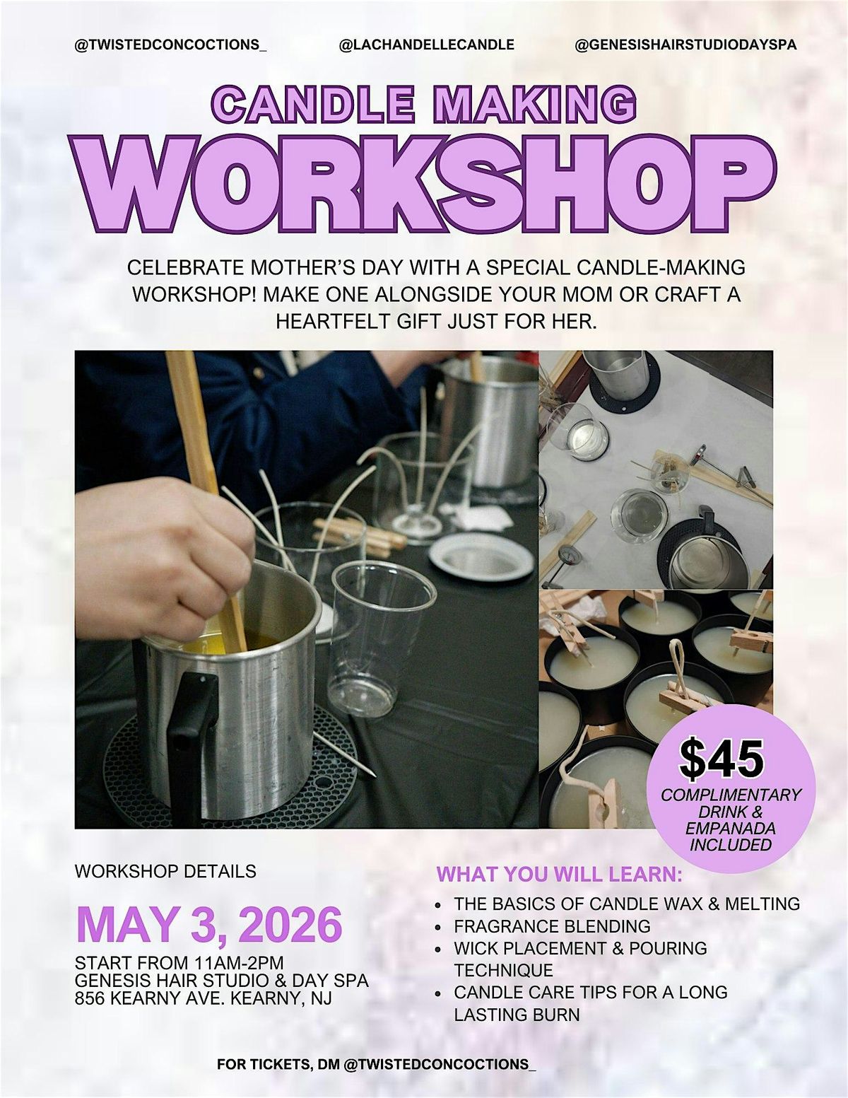 Celebrate Mother’s Day with candle-making! Create with mom or make her a gift, plus shop local vendors for the perfect Mother’s Day finds.