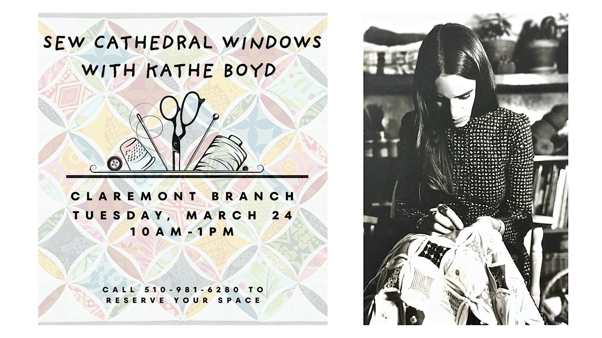 Learn to hand-sew cathedral windows, a time-honored quilting pattern, with Kathe Boyd in this 3-hour class. Sign up by calling 510-981-6280.