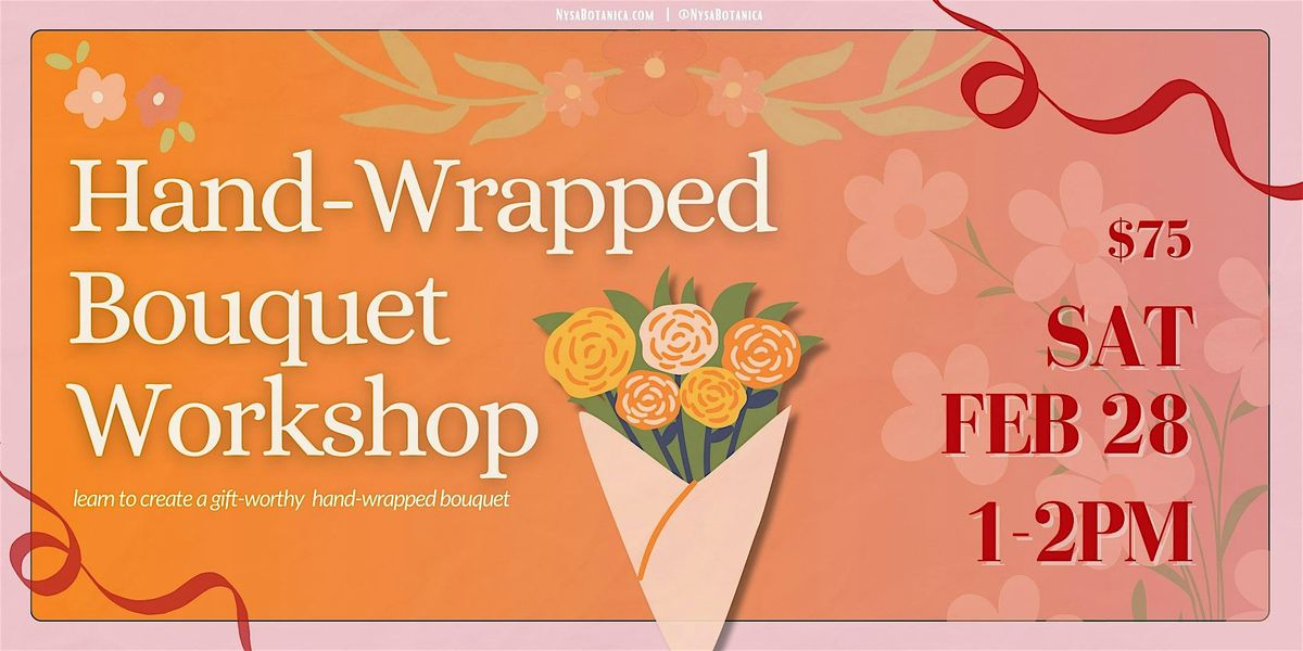 Join this hands-on workshop and learn how to create a gift-worthy hand-wrapped bouquet. You will practice florist techniques for arranging and wrapping flowers into a polished, beautiful bouquet you can gift or take home. All materials are provided and no experience is needed. Come ready to get creative and enjoy a relaxed, fun floral experience. All materials included. 💐