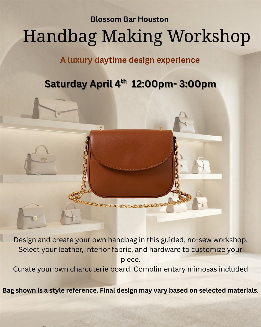 Handbag Making Workshop is a luxury daytime design experience inside the elevated aesthetic of Blossom Bar Houston.