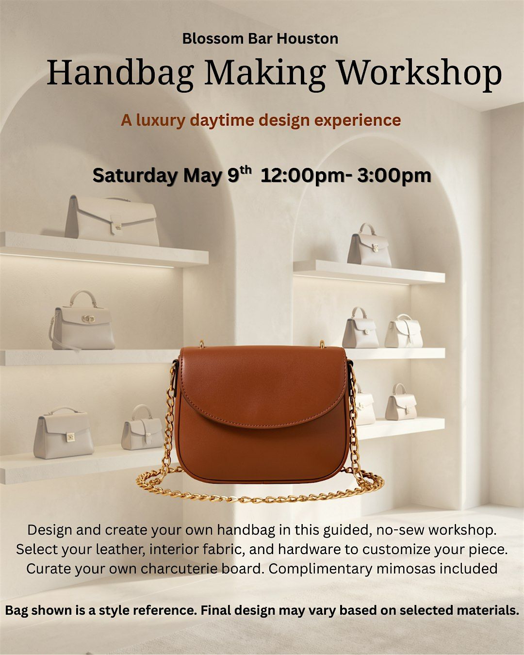 Handbag Making Workshop is a luxury daytime design experience inside the elevated aesthetic of Blossom Bar Houston.