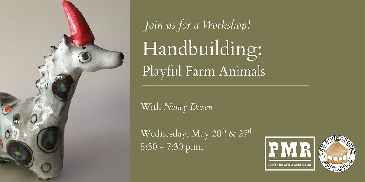 In this unique ceramic workshop, participants learn beginning handbuilding techniques while they form three or four legged playful farm animals with local artist Nancy Dasen.