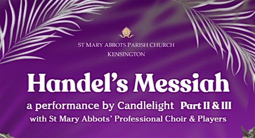 On Palm Sunday our choir of professional classically trained singers and new orchestra will perform the story of Christ's Passion and Resurrection, written by Handel in our beautiful candlelit church. Following on from our Christmas Messiah (Part I) which told the story of his birth, parts II and III tells the story of the end of Christ's life, his suffering, death and resurection. Tickets are £15 and include a programme and a glass of wine.