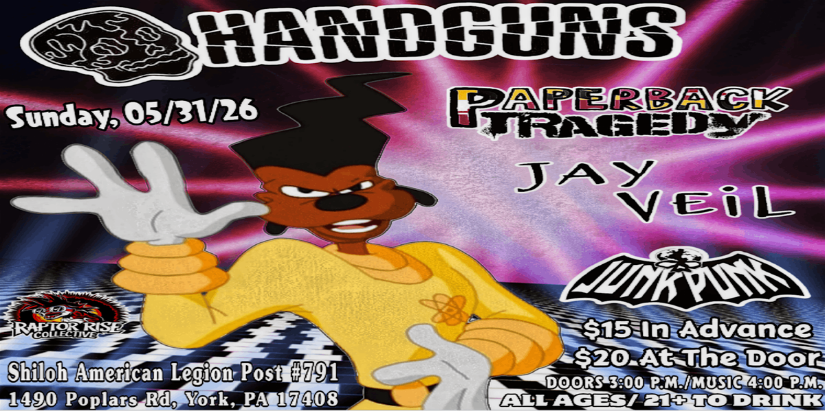 Pop Punk legends from Harrisburg, Handguns invades York, Pa. Joining for support is Paperback Tragedy, Jay Veil, and Junk Punk.