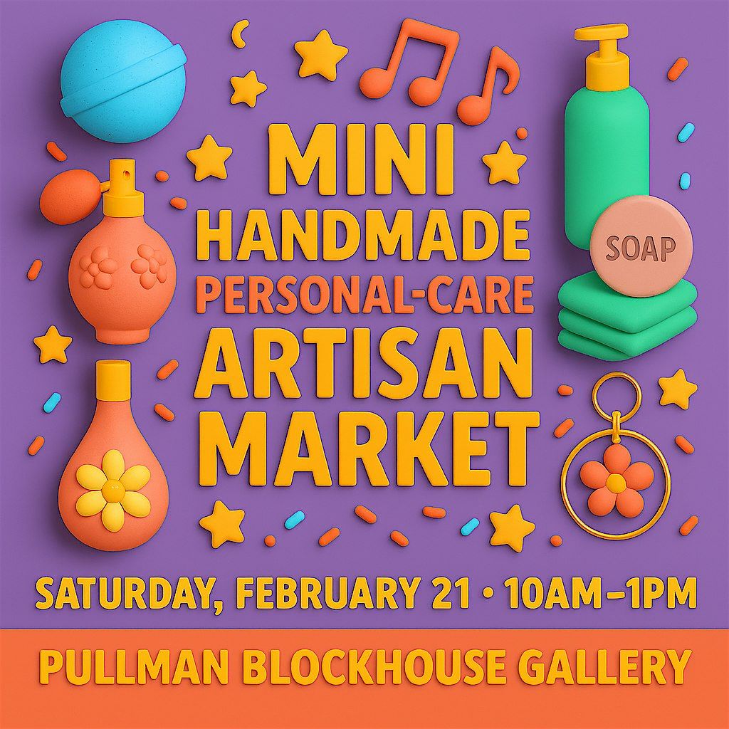 Get ready for a feel‑good, smell‑good, glow‑good kind of day! The Mini Handmade Personal‑Care Artisan Market is popping up at the Pullman Blockhouse Gallery — bringing small‑batch magic, luxe self‑care goodies, and a joyful community vibe. Explore handcrafted creations made with intention, artistry, and a whole lot of love. What You’ll Find - Luxurious body oils, butters, soaps, scrubs, mists, candles, bath bombs, handcrafted parfums, aromatic blends, and nourishing hair‑care items - unique, artisan‑made jewelry - All items are handmade by local artisans, with most crafted using vegan ingredients