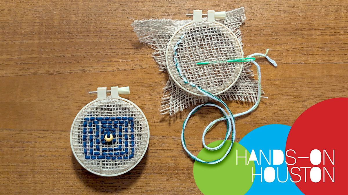 Explore the art of embroidery at this month’s Hands-on Houston! Learn how to thread a kid-friendly needle and design your own composition using a hoop and burlap (a beginner-friendly loose weave cloth). Add interesting shapes and textures to your artwork using yarn and beads, and leave with a finished hoop ready to hang in your home!