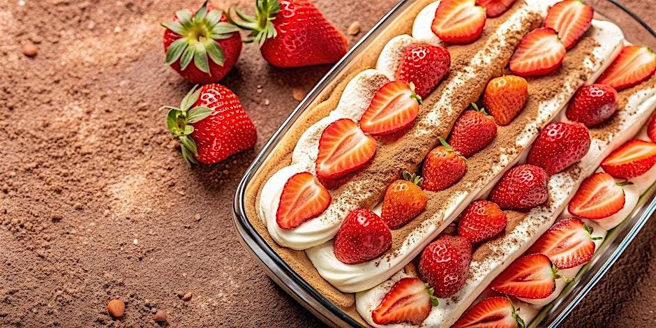 About this Dish: Tiramisù dates back to the 1960’s, where espresso-soaked ladyfingers are layered with sweet mascarpone cream and then dusted with cocoa powder. In this class, you’ll assemble a Strawberry version of the Tiramisù from prepared ingredients and top your Tiramisu with fresh strawberries.