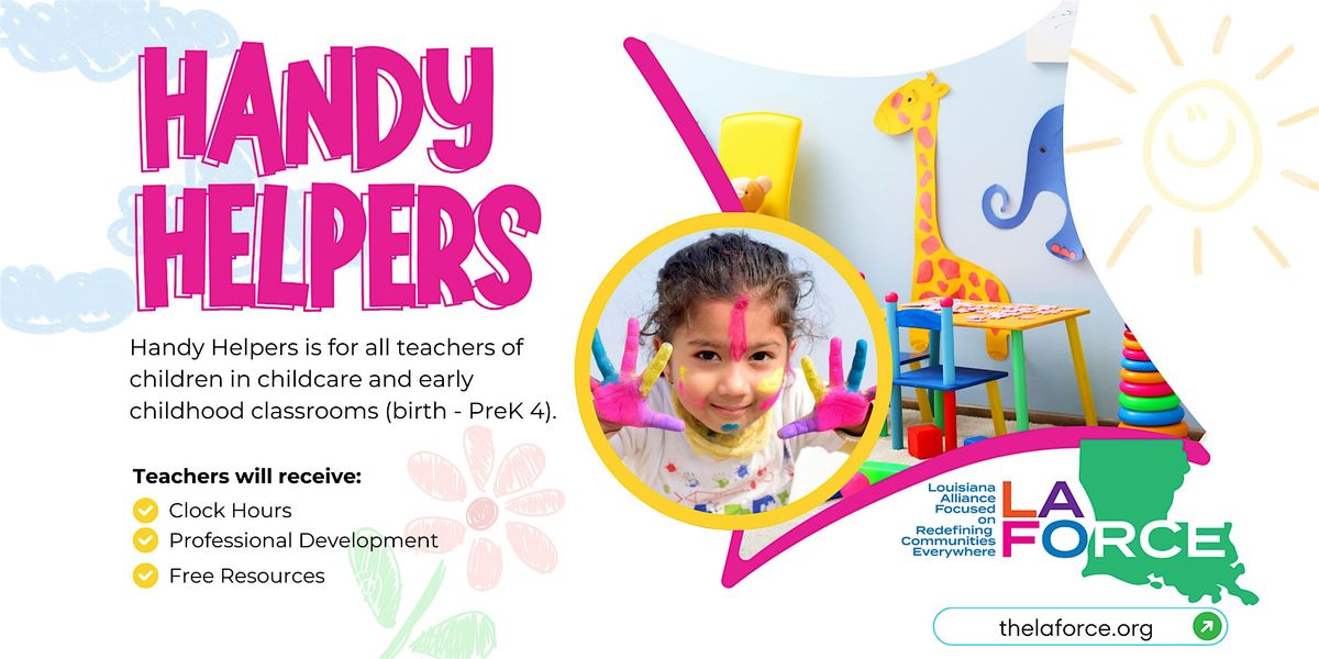 Handy Helpers is an event where educators in childcare and early childhood classrooms will receive 1 hour of professional development that would go towards their yearly requirement of clock hours, new learning that is aligned to CDA subject areas, and free resources to use in their classroom.