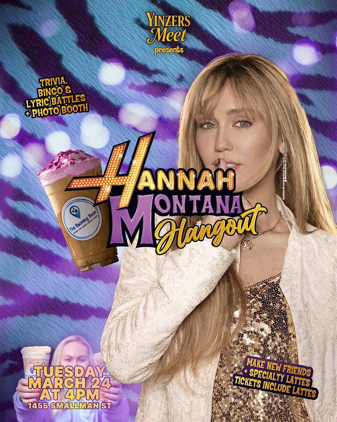 We’re turning Roaming Bean into a 2000s Disney pop star dream for one night only — nonstop Hannah Montana & Miley Cyrus, themed specialty drinks, blonde wigs, trivia, bingo, and a room full of girls ready to scream lyrics at the top of their lungs.