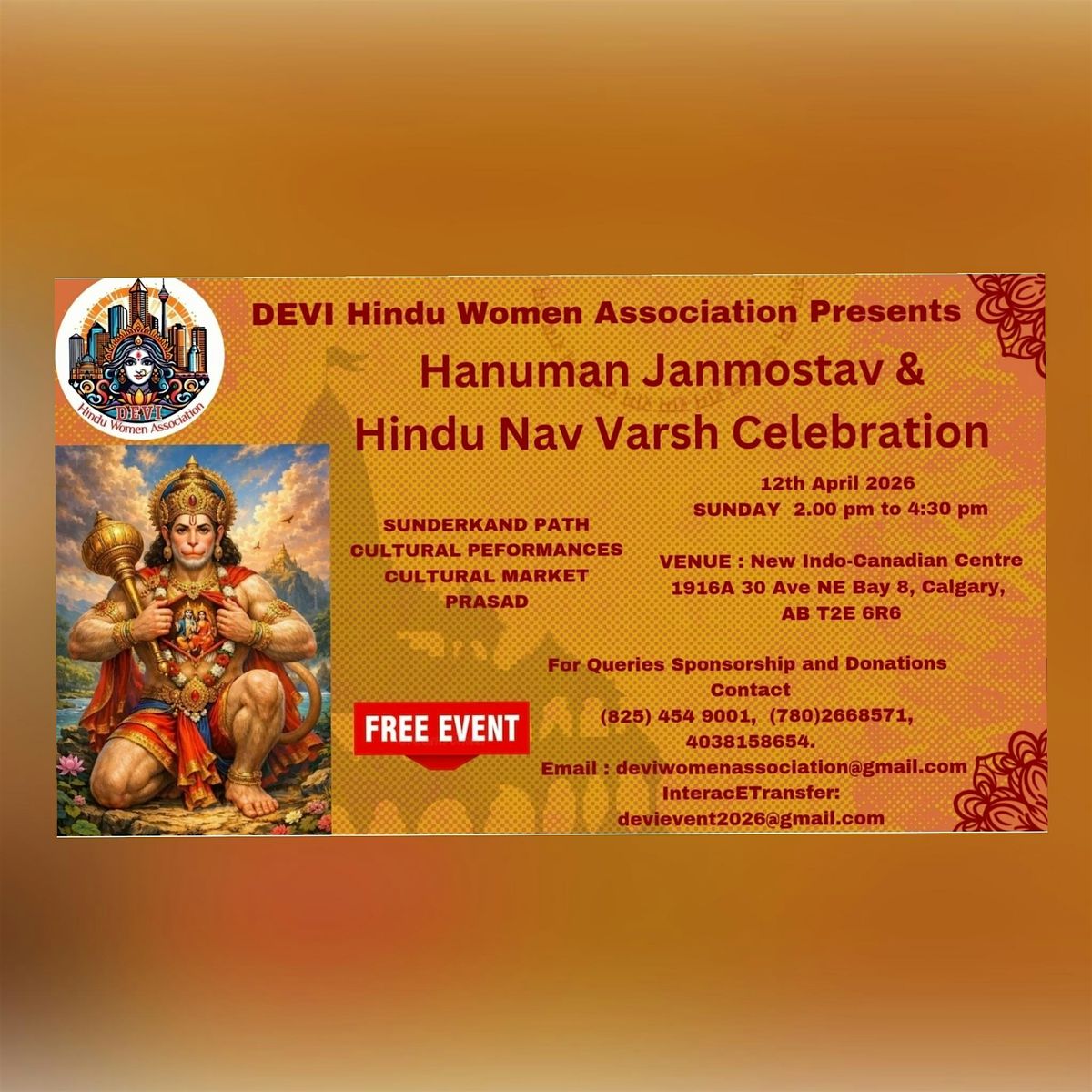 Join us to celebrate the divine birth of Hanuman Baba and welcome the Hindu New Year with devotion, positivity, and community spirit.