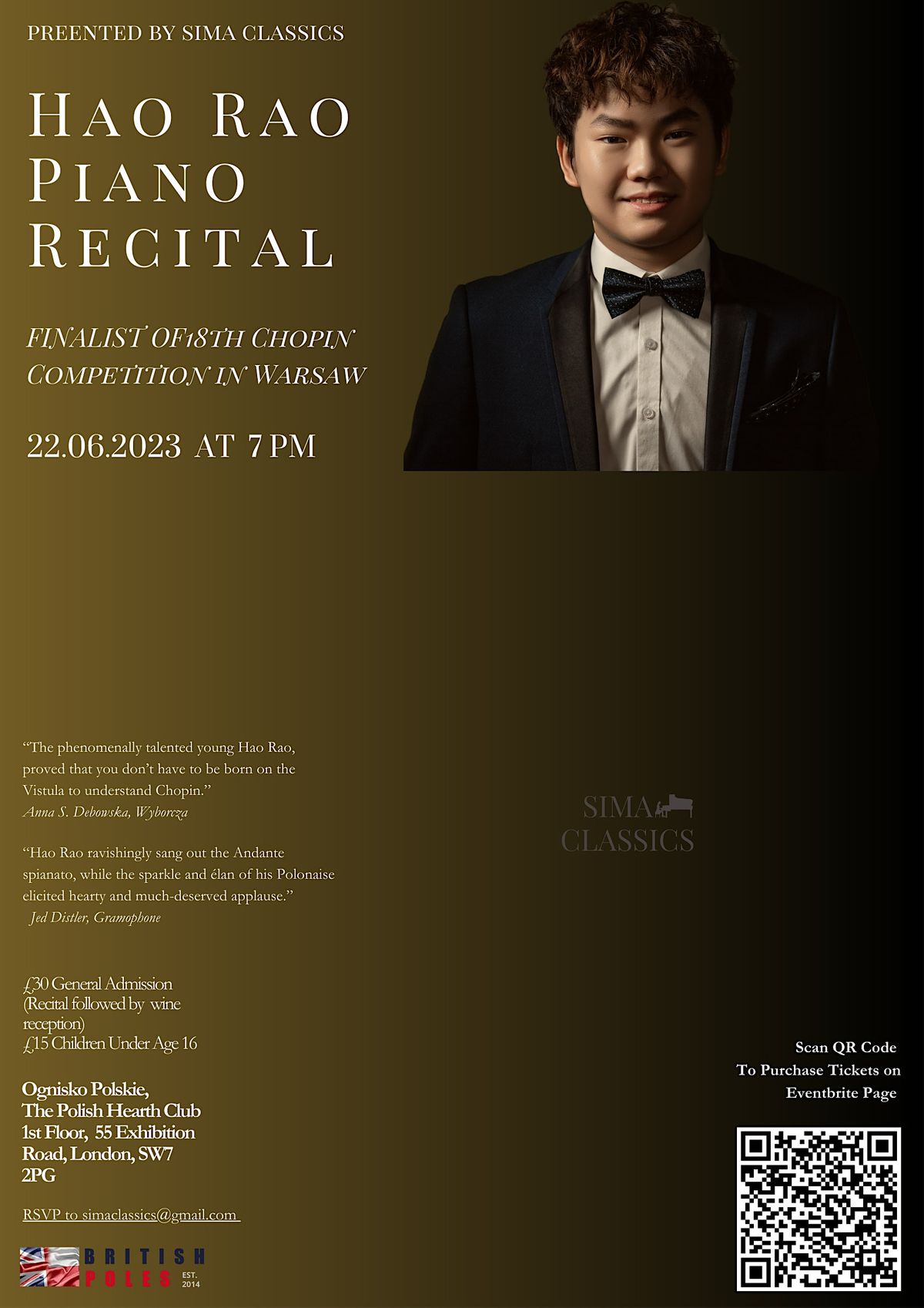SIMA Classics proudly presents, Solo Recital by Hao Rao, one of the youngest finalists of the 18th International Chopin Piano Competition in Warsaw.