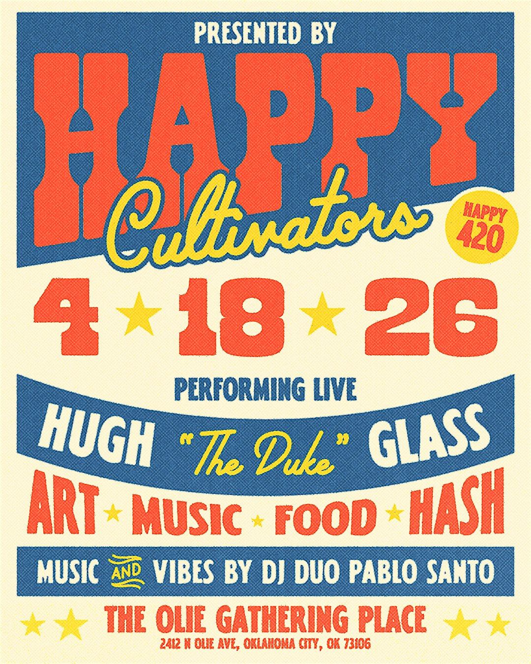 Celebrate in OKC with Happy Cultivators! Featuring a live set by Hugh "The Duke" Glass. Secure your spot today!Agenda