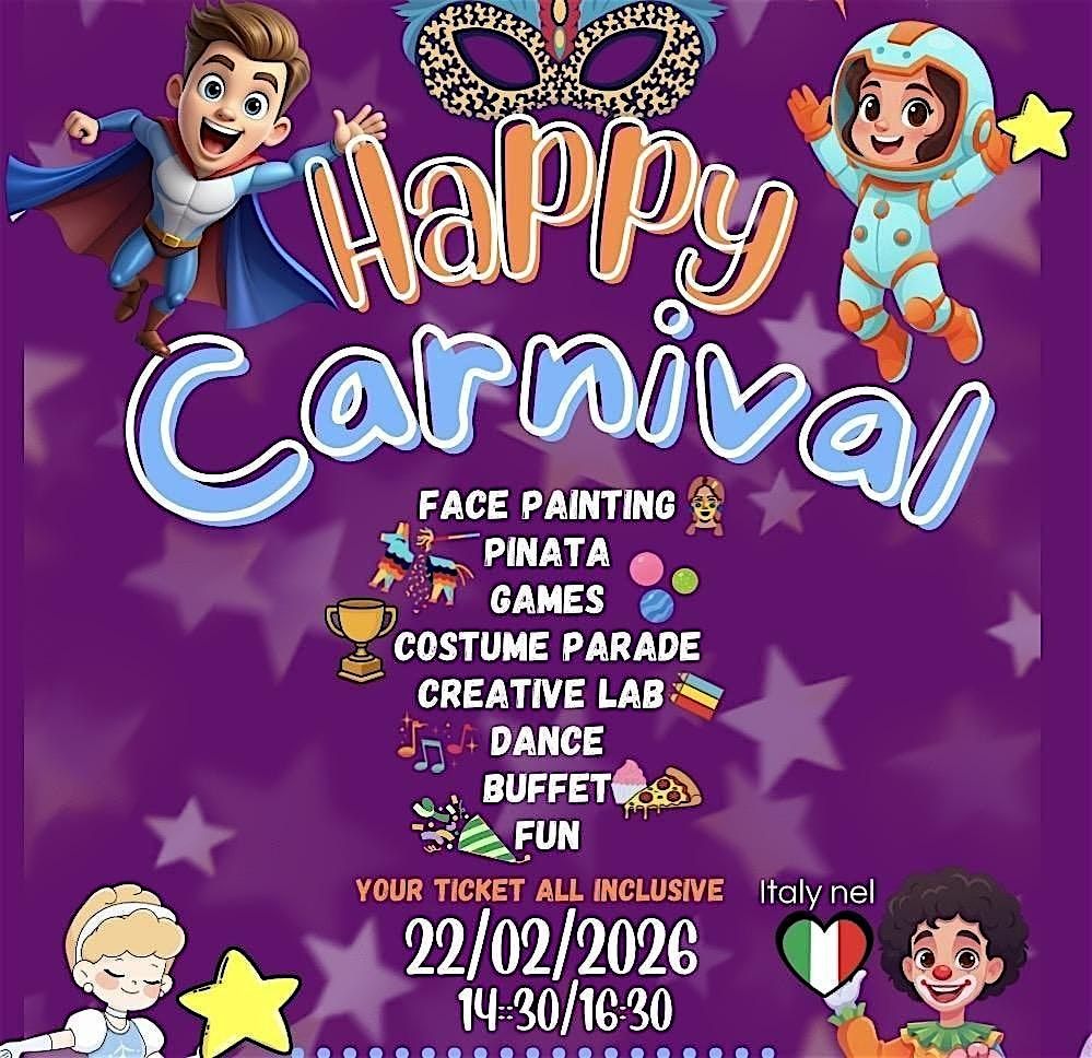 happy carnival é un’occasione per stare tutti insieme , divertirci, fare nuove amicizie , e vedere i nostri piccoli che costruiscono ricordi!