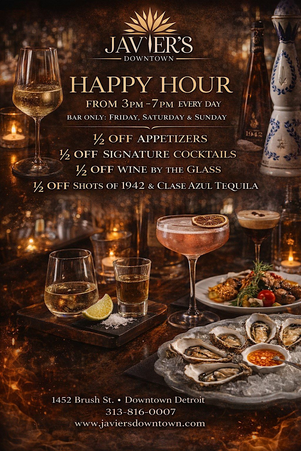 Hey there! Join us for a fun happy hour at Javier's at 3:00 PM to 7:00 PM (ET). It's the perfect chance to unwind, catch up with friends, and enjoy some great vibes in person. Don’t miss out on this chill afternoon filled with good times and good company. See you there!