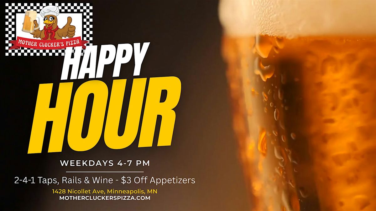 Join us for Happy Hour at Mother Clucker's Pizza, weekdays from 4 PM to 7 PM! 🎉🍕 Enjoy a delightful evening filled with mouthwatering pizza and fantastic company. Gather your friends and unwind after a long day at work in our lively atmosphere. We have an array of games to keep the fun going, including pool, darts, pull-tabs, video games, and pinball! 🎱🎯
