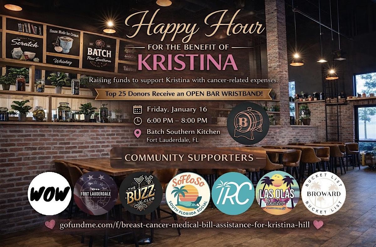 This special event is dedicated to raising funds to help support Kristina with cancer-related expenses. The top 25 donors will receive an open bar wristband as a thank-you for their generosity, but everyone is encouraged to come out, enjoy the night, and be part of a supportive and uplifting community.