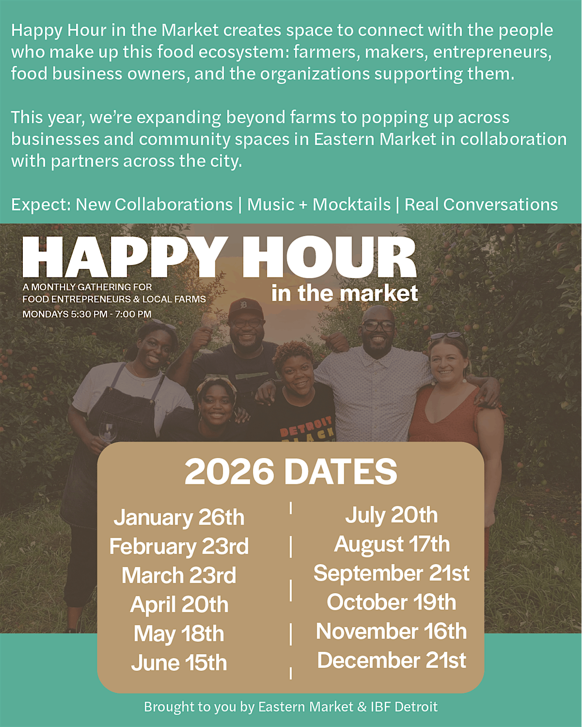 Happy Hour in the Market creates space to connect with the people who make up this food ecosystem: farmers, makers, entrepreneurs, food business owners, and the organizations supporting them.